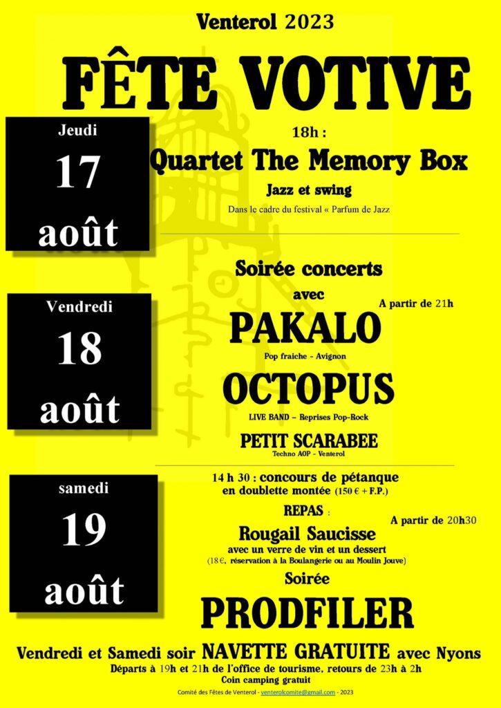 24 Rue du Bout du Monde, 26110 VENTEROL (+33)4.75.27.91.11 Ecrire à la Mairie