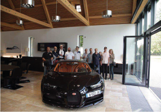 Pour terminer notre visite, notre accompagnatrice nous ouvrit les portes du showroom afin que nous puissions prendre en main le moteur W16 de 1500 ch. Incroyable architecture de mécanique que ce fabuleux moteur qui emmène cette chiron à plus de 400 km/h. Ensuite nous concluions notre périple chez Bugatti par une photo autour de la Chiron d’exposition.