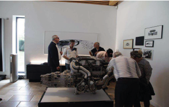 Invités tout d’abord au château où l’on nous raconta l’histoire de la marque, c’est ensuite vers les ateliers de constructions que nous nous sommes dirigés. Le pilote d’essai Steve Jenny, avec une grande bienveillance, répondit à toutes les questions souvent très techniques que posèrent plusieurs d’entre-nous, grands fans de sport auto.