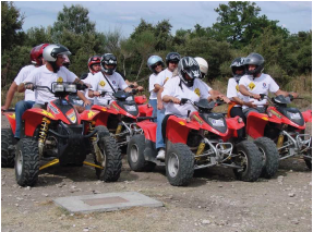 Le 24 août 2007, MM Pierre-André Valayer et Francis Blum, propriétaires des lieux, ont convié les membres de l’association NVDM à Richerenches (84), au « Fun Parc Aventure », pour une incroyable initiation au pilotage de quads en binômes « voyant-déficient visuel ». Autant dire tout de suite que les volontaires n’ont pas manqué…