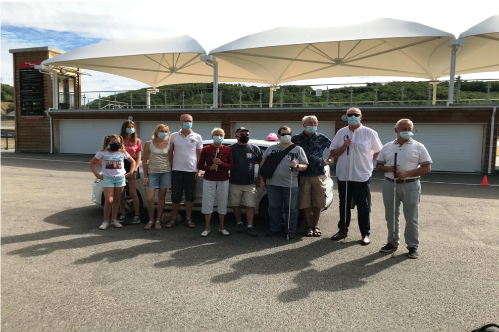 Enfin, c’est en novembre, que nous fûmes invités à la fois par PSA Peugeot-Citroën à Belchamp pour découvrir notamment l’anneau de vitesse avec ses bankings relevés à près de 49°, où les déficients visuels de l’association ainsi que ces accompagnateurs furent emmenés dans une Peugeot 308 GTI à près de 250 km/h pour ressentir les sensations de la force centrifuge.